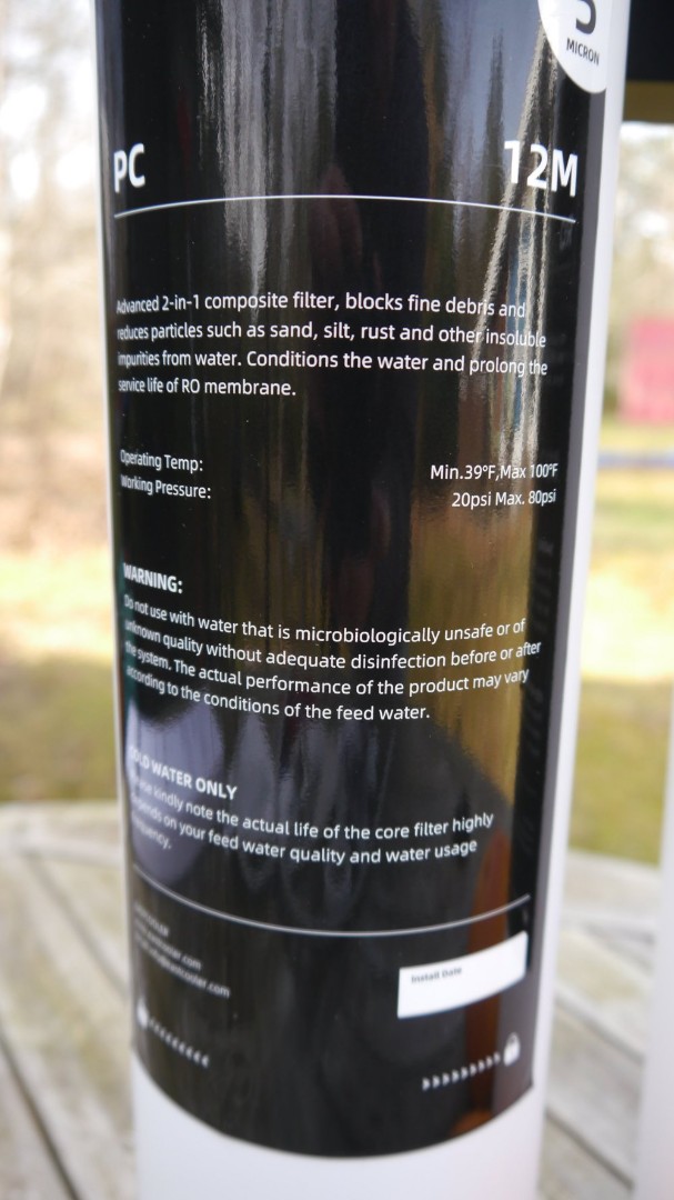 Kombifilter: Sediment og kulfilter. Levetid 1 år.