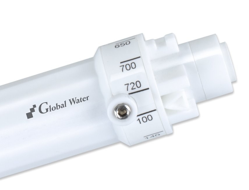 Flowbegrænseren passer til membraner fra 12 gpd til 300 gpd (afhængigt af om systemet er udstyret med en vandtryksforøgerpumpe).