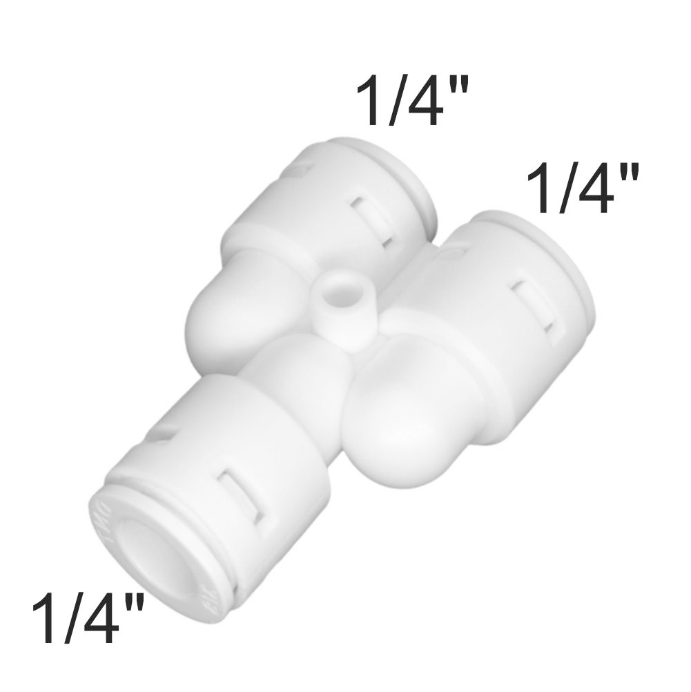 Kobler tre 1/4" slanger sammen. Denne fitting har og behøver INGEN blå låseringe.