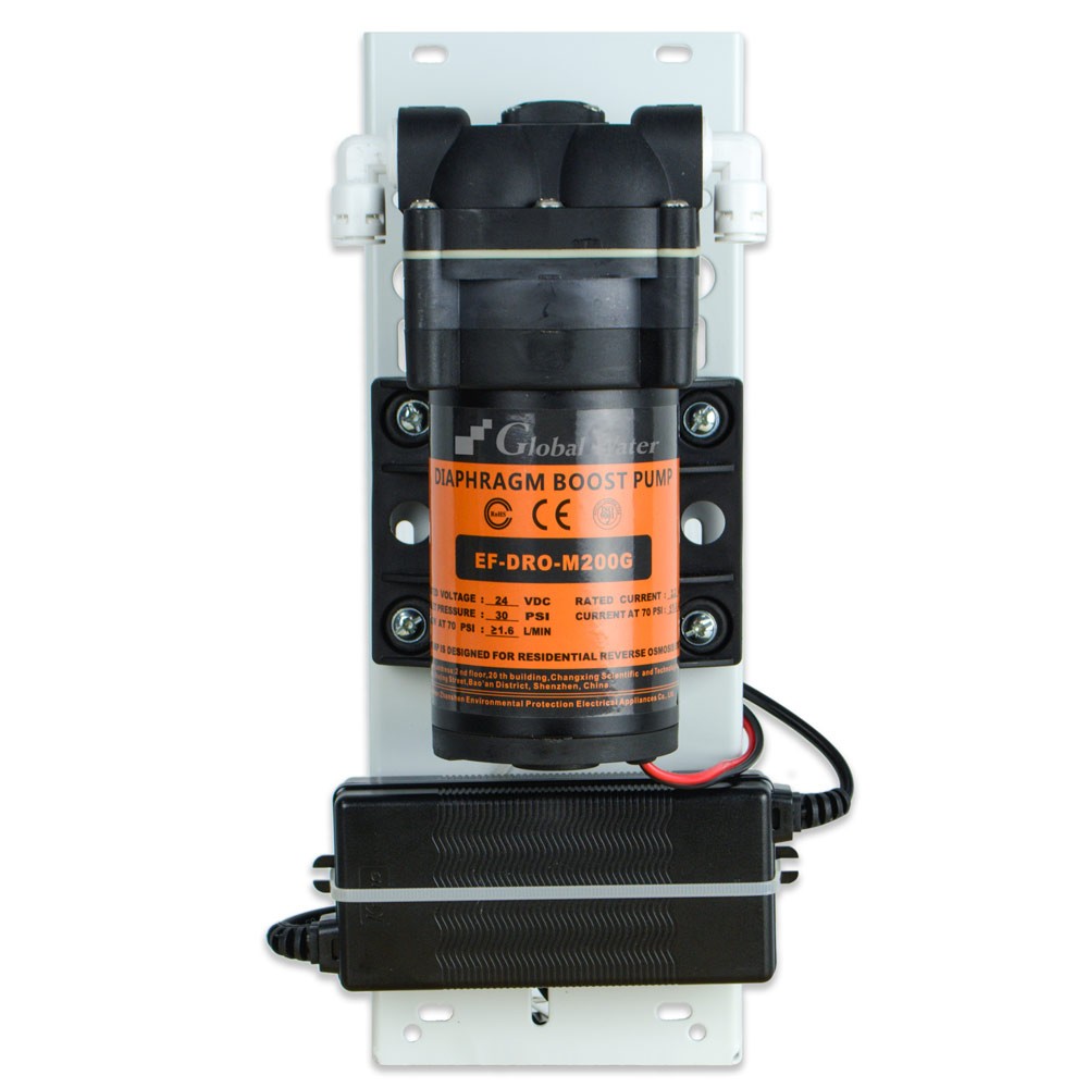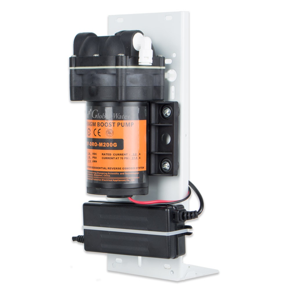 Denne pumpe øger vandtrykket til omvendt osmose anlæg. Pumpen er forsynet med en strømforsyning. Pumpen har to stk 1/4" fittings/forbindelser til vand ind og ud (inkluderet).