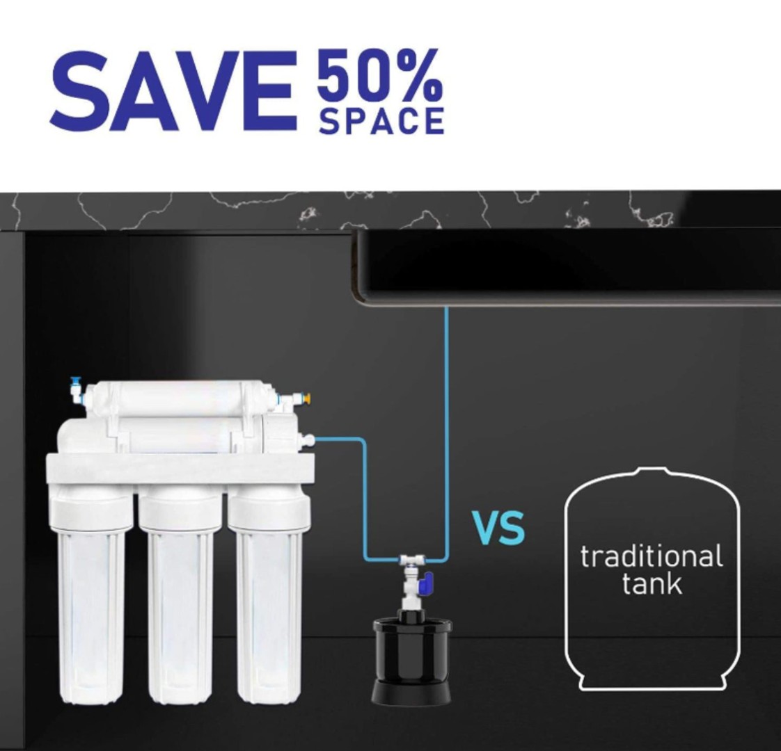 - Innovativ løsning til RO-anlæg uden tank. Den lille vandtank er designet til effektivt at løse de iboende ulemper ved anlæg uden tank: a) lejlighedsvis pulsering af systemet forårsaget af ustabilt vandtryk, især når det er tilsluttet et køleskab eller langdistancebrug. b) indledende tidsforskydning for vandproduktion.